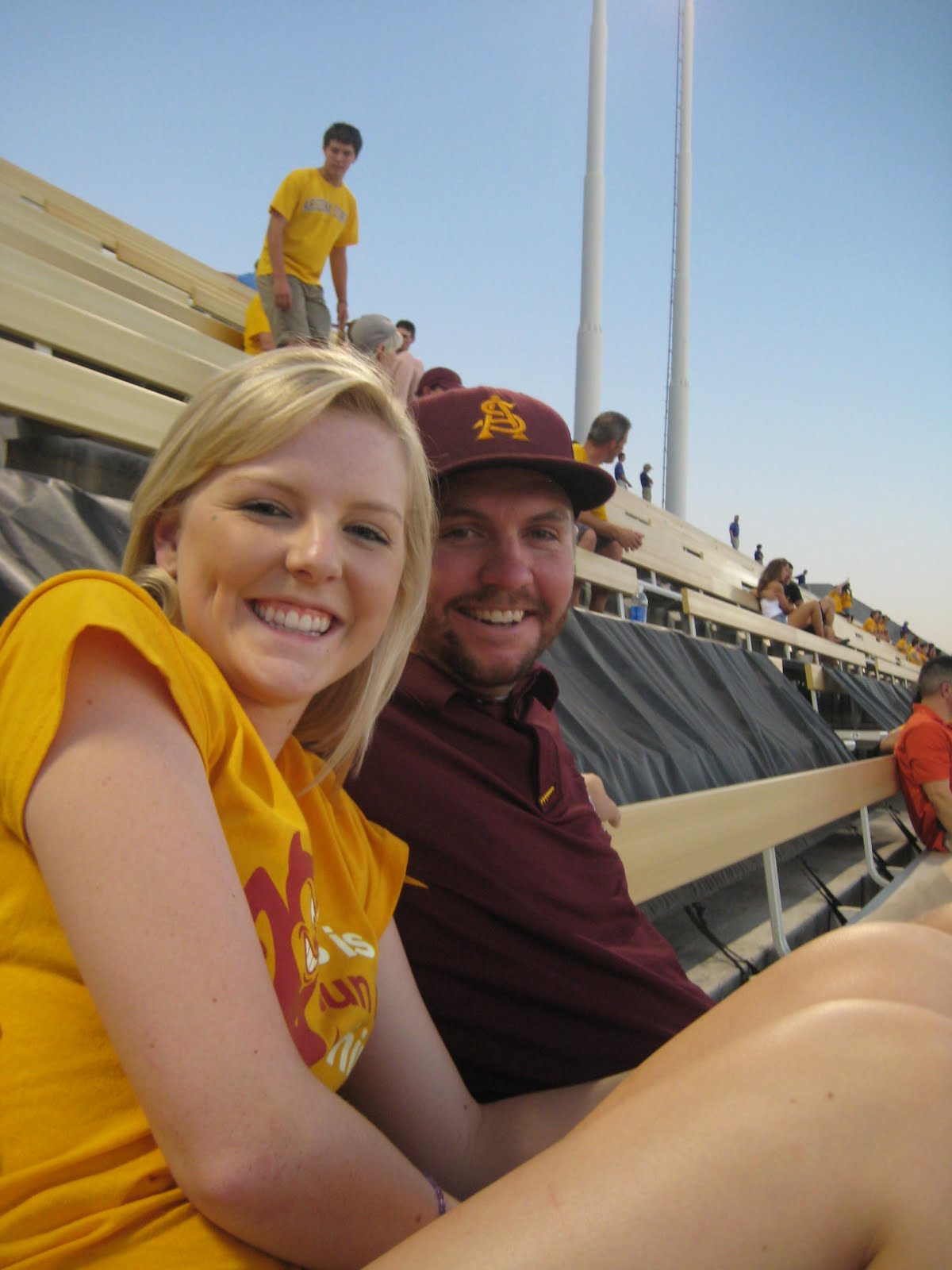 Not this last weekend, but the weekend before that, we went to the ASU game with Matt and Sasha! We had a great time...except when the drunk (probably underage) girl next to us started puking! I may sound cold-hearted, but I have absolutely no sympathy for people who get to this point. Apparently, her friends must have felt the same because they just continued taking pictures of themselves! Good friends they are! It was DISGUSTING! There were a few seats open next to us on the opposite side so we were able to scoot down. It was a long game too! We ended up leaving close to 10:00 and the 4th quarter was just barely starting! ASU ended up winning-if you care:) We had a great time!